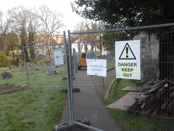 The building work has begun. This is what will meet you as you now approach the church.