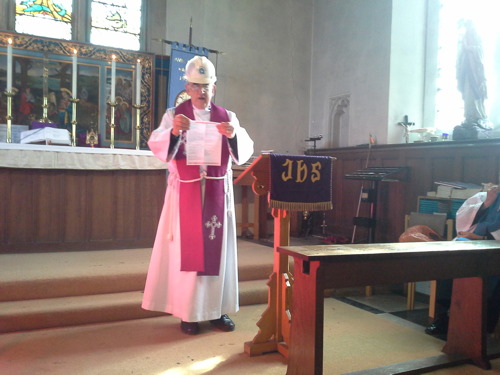 Even Fr Leslie prepared for falling debris, health and safety always in mind